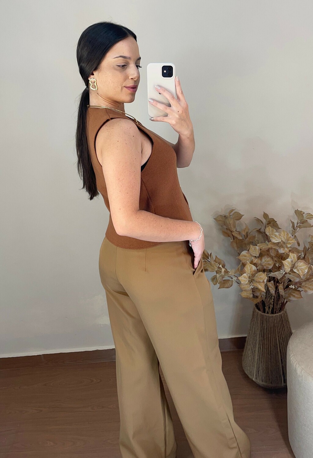 Este colete em tricô marrom une elegância e conforto em uma peça versátil e atemporal. Com corte moderno e acabamento refinado, é perfeito para compor looks casuais ou sofisticados com muita personalidade. Uma peça coringa no guarda-roupa feminino.